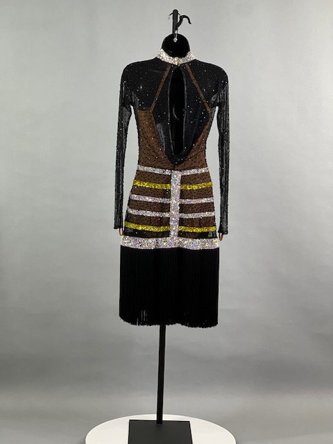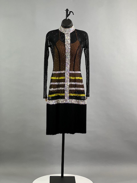 This is a beautiful black Rhythm/Latin Dress designed by Jordy! It moves amazing on the dance floor. Trimmed with Austrian Crystals.