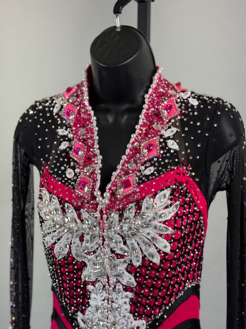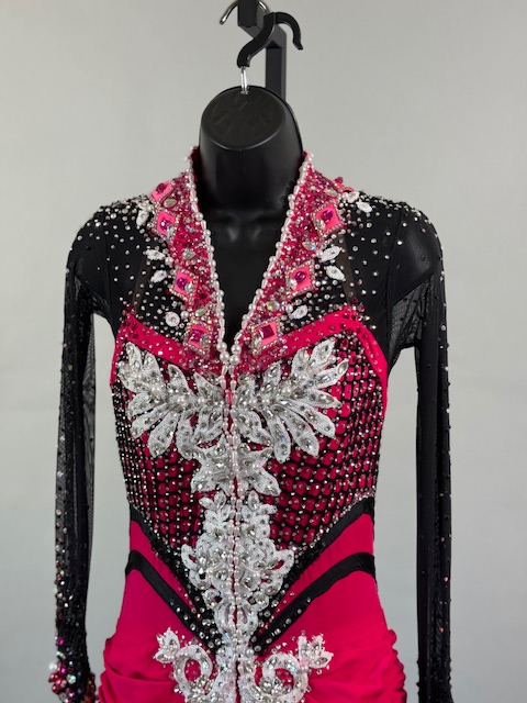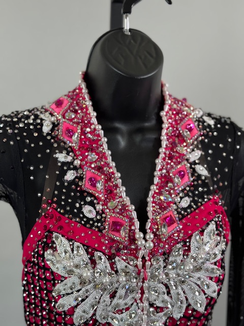 This is a beautiful pink and black smooth designed by Natasha! It looks amazing on the dance floor. Trimmed with Preciosa Crystals.